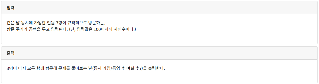 매우 규칙적이라고 할 때, 다시 모두 함께 문제를 풀게 되는 그날은 언제일까?