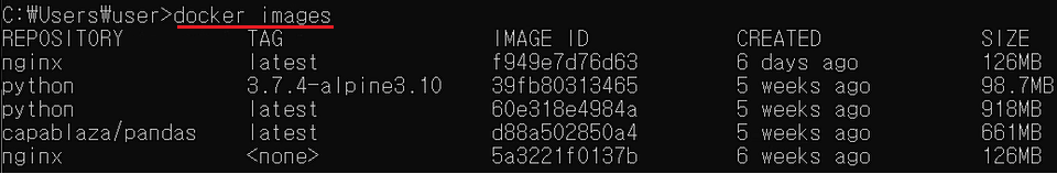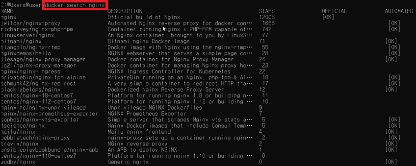 docker 명령어를 저는 cmd(명령 프롬프트)에서 입력 하였습니다.