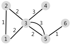 | 5 | [[1,2,1], [2,3,3], [5,2,2], [1,4,2], [5,3,1], [5,4,2]] | 3 | 4 |