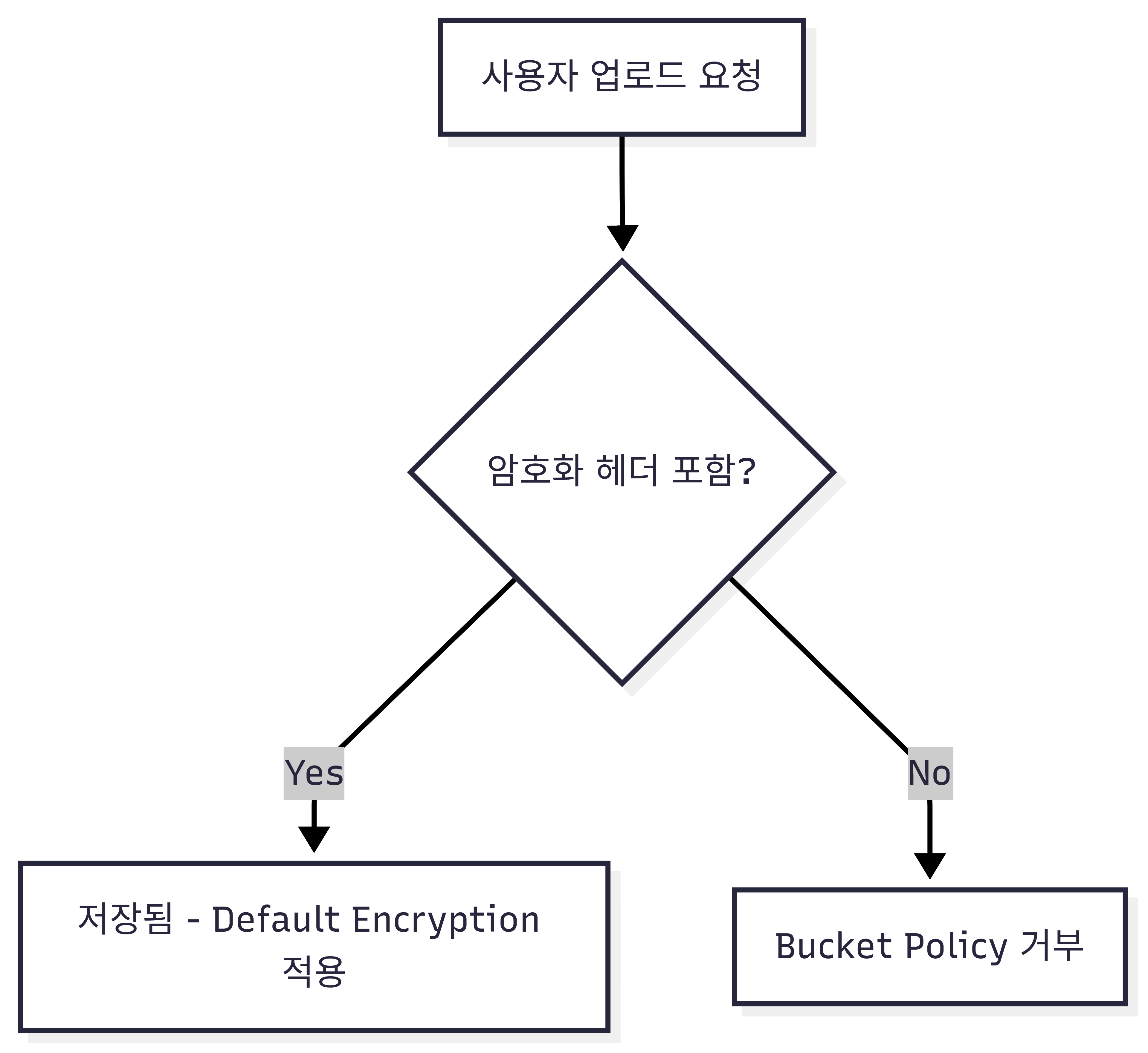 - ์ ๋ก๋ ์์ฒญ์ x-amz-server-side-encryption ํค๋๊ฐ ์์ผ๋ฉด ๊ฑฐ๋ถ(Deny)