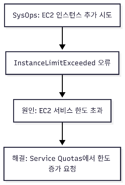 - SysOps ๊ด๋ฆฌ์๊ฐ ์ธ์คํด์ค ์ถ๊ฐ ์๋ → InstanceLimitExceeded ์ค๋ฅ ๋ฐ์