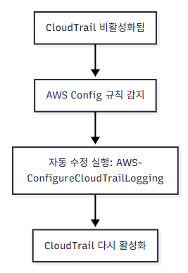 A[CloudTrail ๋นํ์ฑํ๋จ] --> B[AWS Config ๊ท์น ๊ฐ์ง]