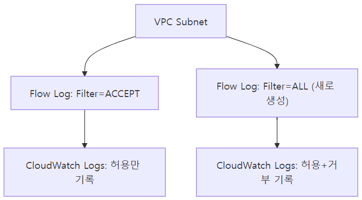 Subnet --> FlowLog2["Flow Log: Filter=ALL (์๋ก ์์ฑ)"]