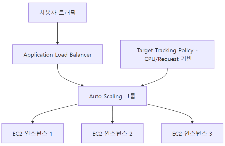 - ๋์ ์ค์ผ์ผ๋ง → CloudWatch ์งํ ๊ธฐ๋ฐ (์: CPU > 70%)
