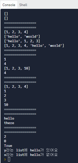 print("y라는 list에 hello가 있어요")