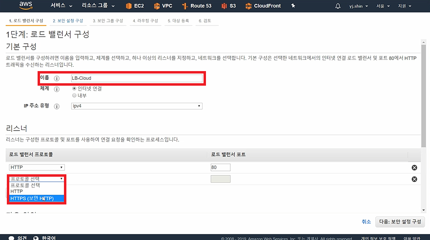 리스너 추가 - HTTPS(보안 HTTP) 선택