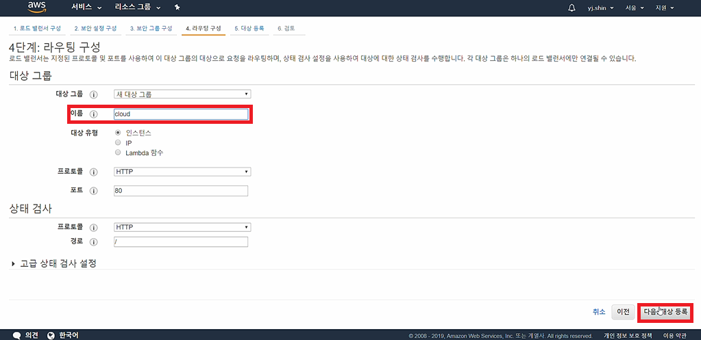 | [AWS] 로드 밸런싱 - 대상 그룹 설정 (0) | 2019.09.26 |