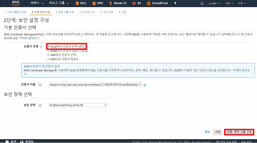 인증서 유형 - ACM에서 인증서 선택 (권장) 후 다음