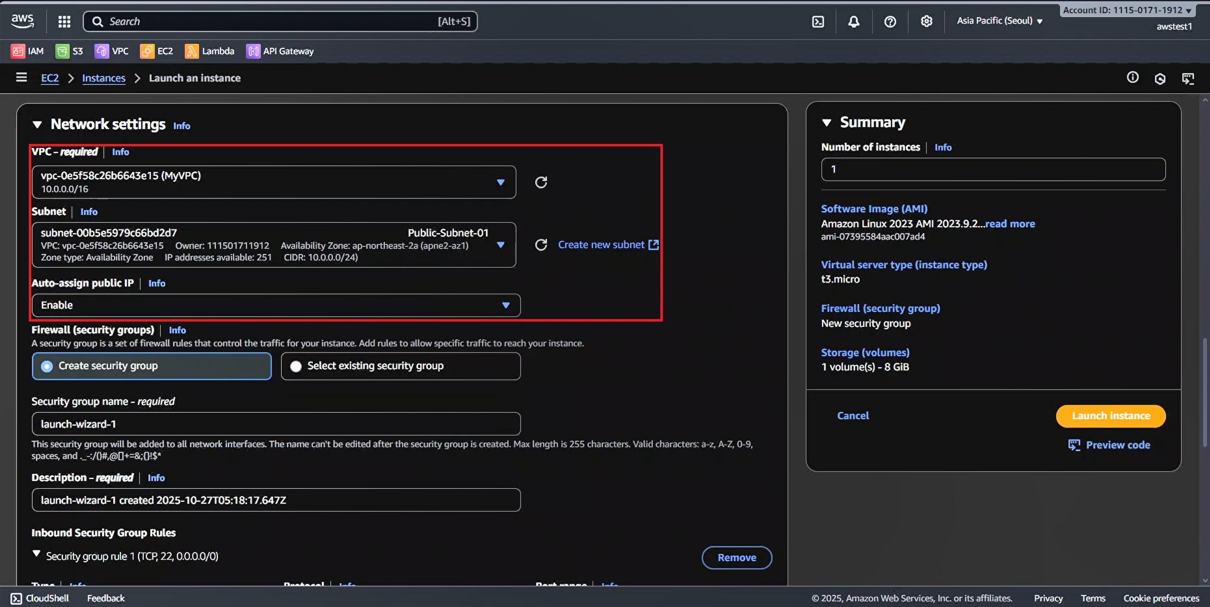 1-0. AWS Region : Asia Pacific (Seoul) ap-northeast-2
