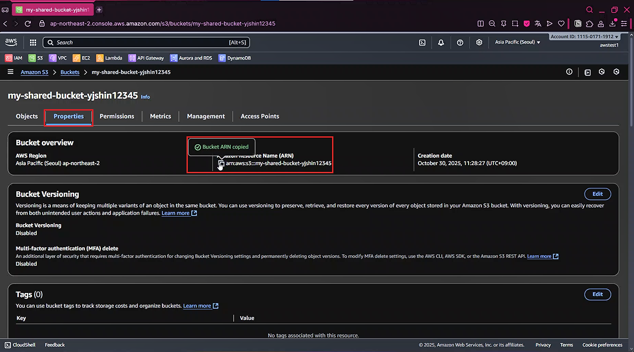 S3 Bucket - Properties - ARN 복사 아님 XXX