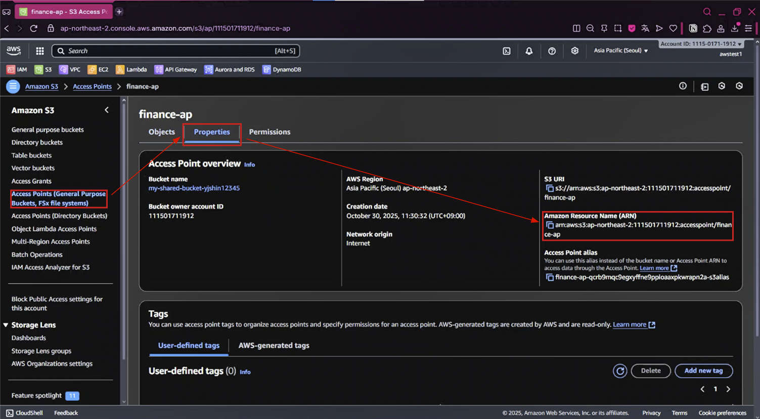 arn:aws:s3:ap-northeast-2:123456789101:accesspoint/finance-ap
