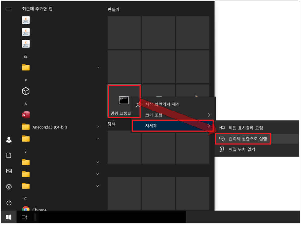 1. CMD(명령 프롬프트)창 관리자 권한으로 실행