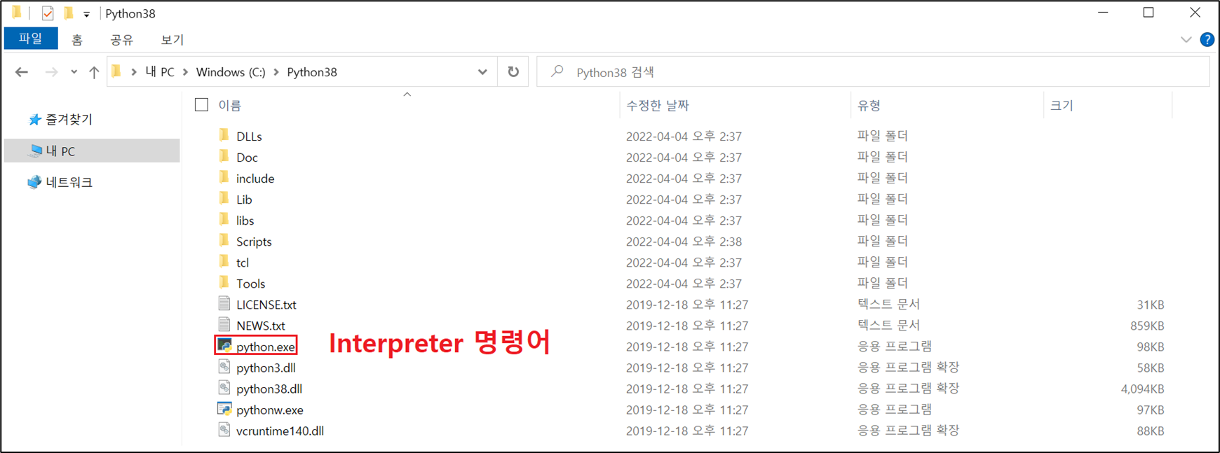 13. Python 3.8.1 설치된 경로에 정상 설치 여부 확인