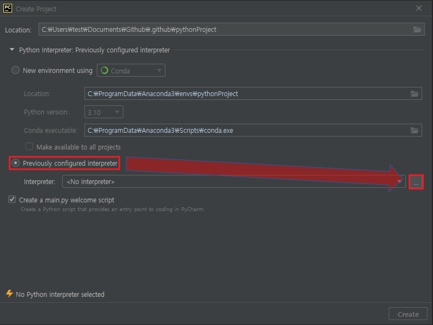 2. Previously configured interpreter → [...] 마우스로 클릭