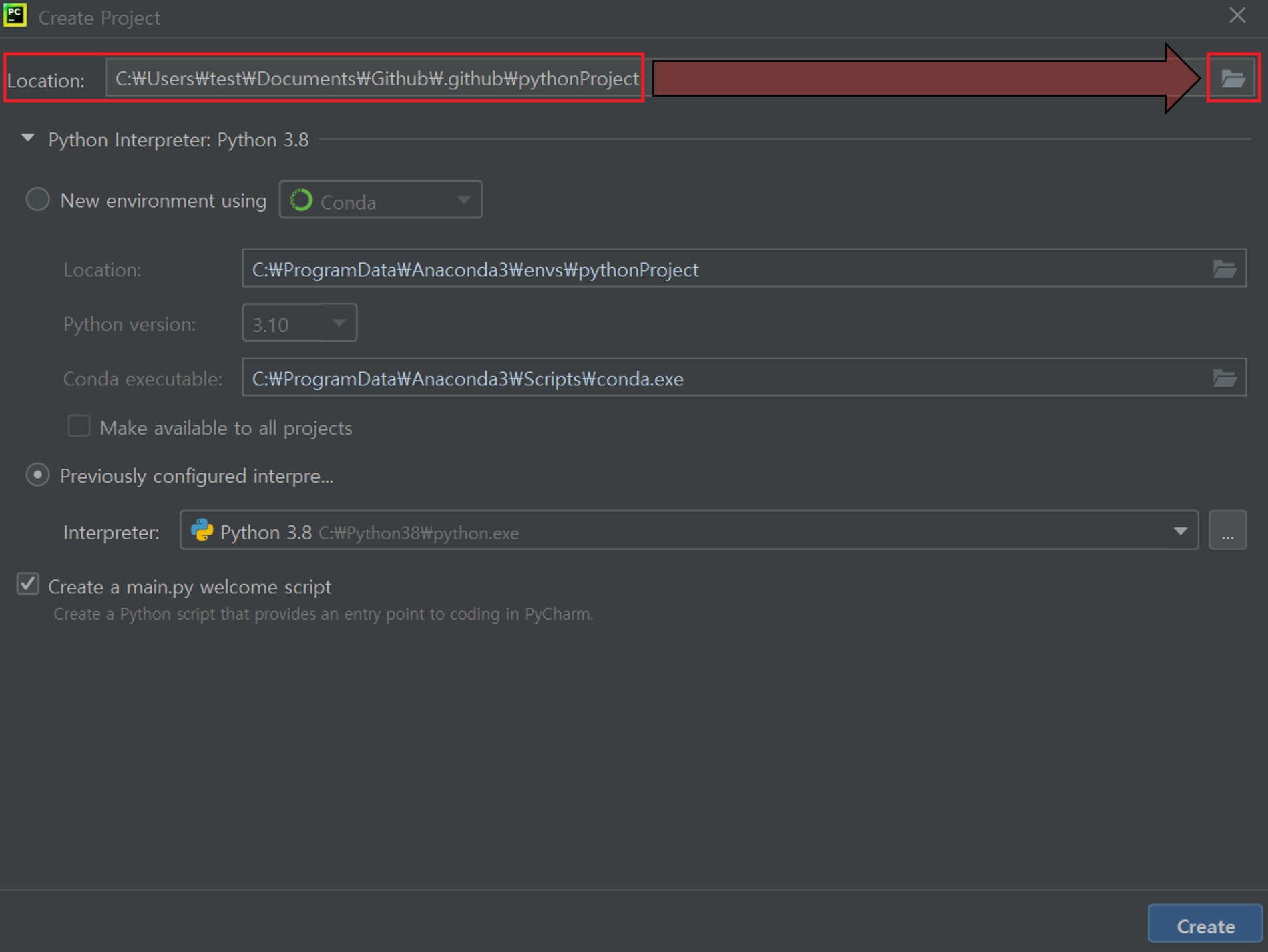 4. Location → 우측 폴더 모양 마우스로 클릭