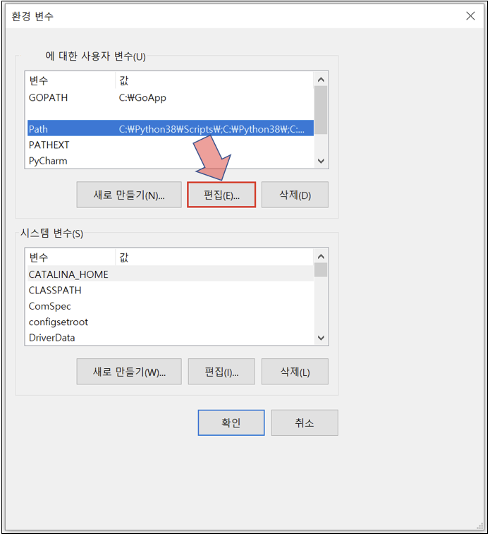 11. 환경 변수 → 사용자 변수 → 편집