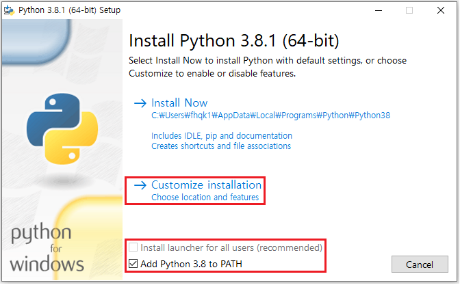 8. Python 3.8.1 설치 완료