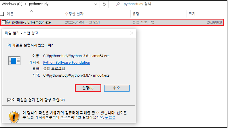 3. python 설치 파일 다운로드 완료되면 실행