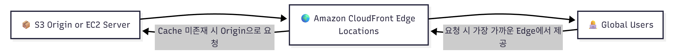 AWS의콘텐츠 전송 네트워크(CDN)서비스입니다. 정적(이미지, 동영상, HTML 등)과 동적 콘텐츠를전 세계 엣지 로케이션(Edge Location)에 캐싱하여, 사용자에게가장 가까운 위치에서 빠르게 제공합니다.