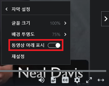 5. 자막설정 [Caption settings] - 동영상 아래 표시 [Display under video] 체크