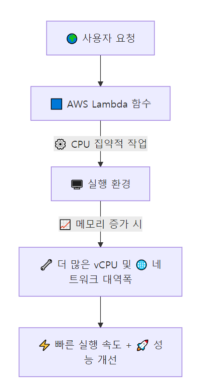 Execution -->|"📈 메모리 증가 시"| CPU["🔧 더 많은 vCPU 및 🌐 네트워크 대역폭"]