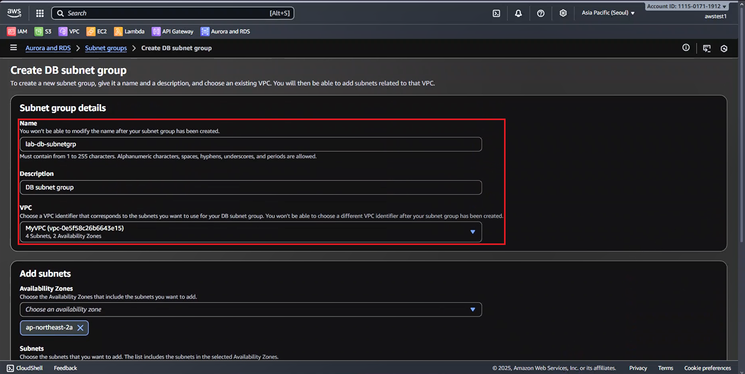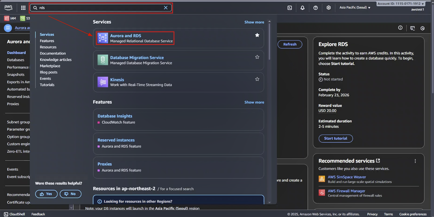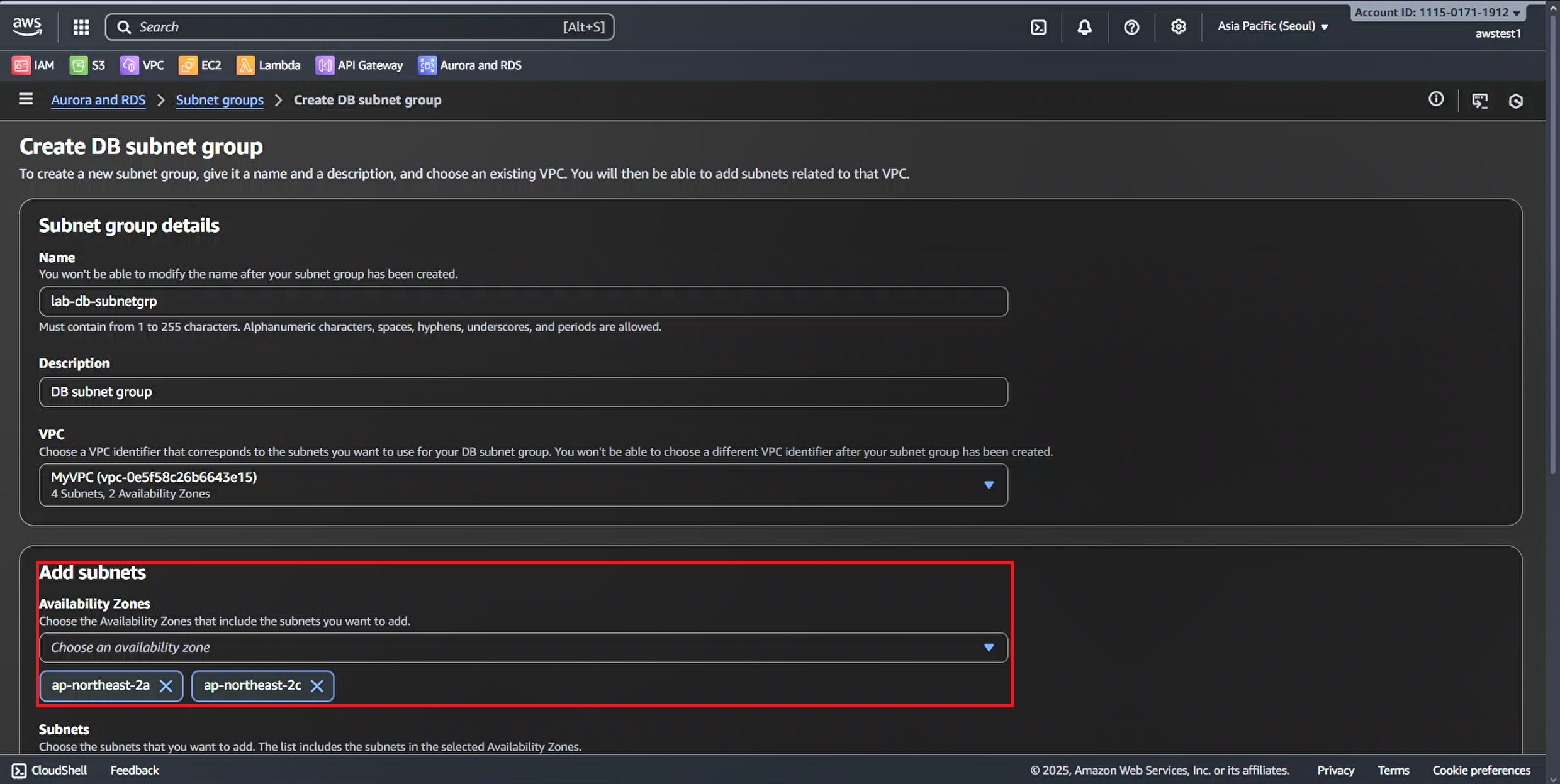 1-0. AWS Region : Asia Pacific (Seoul) ap-northeast-2