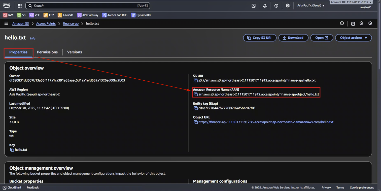 5-6. [Properties] - ARN 주소에 accesspoint 포함 확인