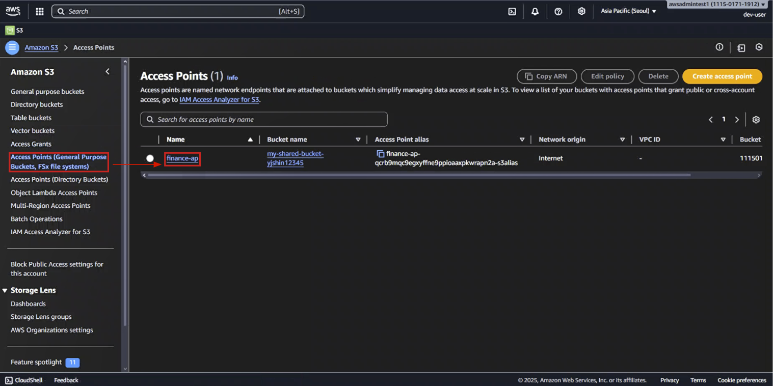 arn:aws:s3:ap-northeast-2:123456789101:accesspoint/finance-ap