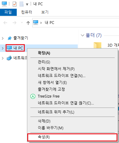 1. 내 PC → 마우스 우클릭하여 속성 마우스로 선택