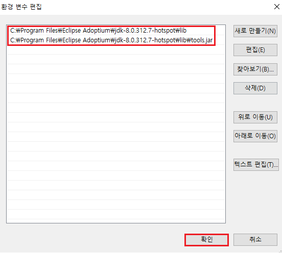 5. 아래 경로 추가 후 확인 버튼 마우스로 클릭