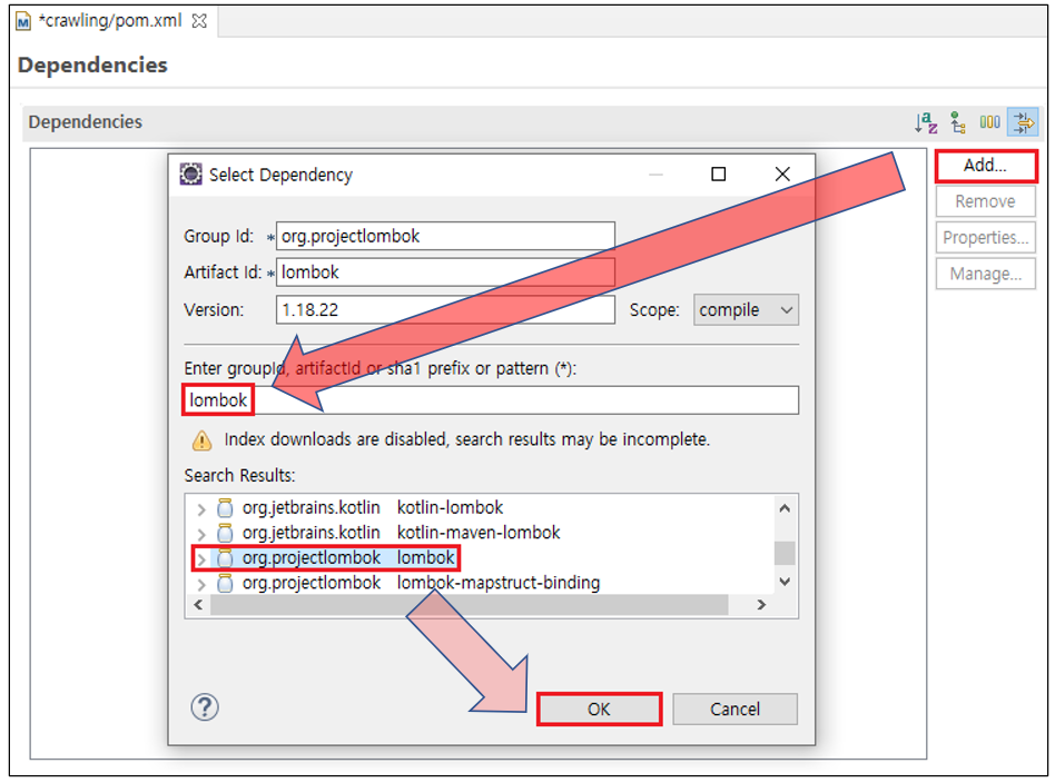 1. Maven Project를 생성 → pom.xml 파일 실행 → 하단에 pom.xml 탭 → Dependencies 탭 마우스로 클릭