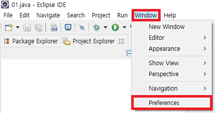 1. Eclipse IDC 실행 → Window → Preferences