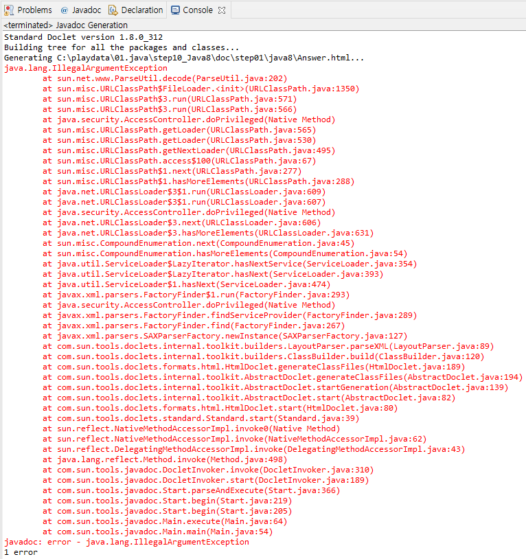 javadoc: error - java.lang.IllegalArgumentException