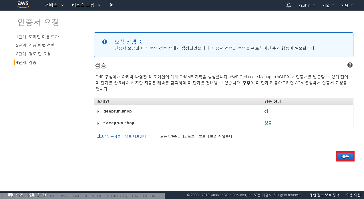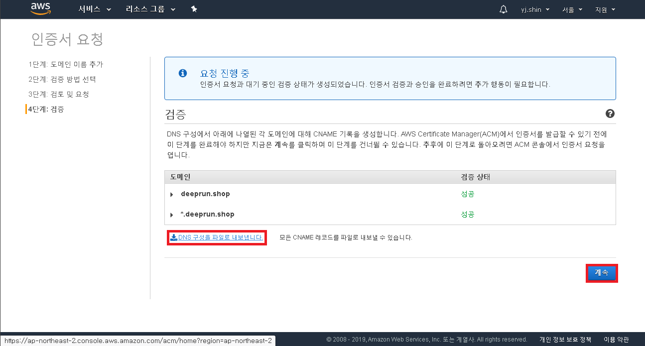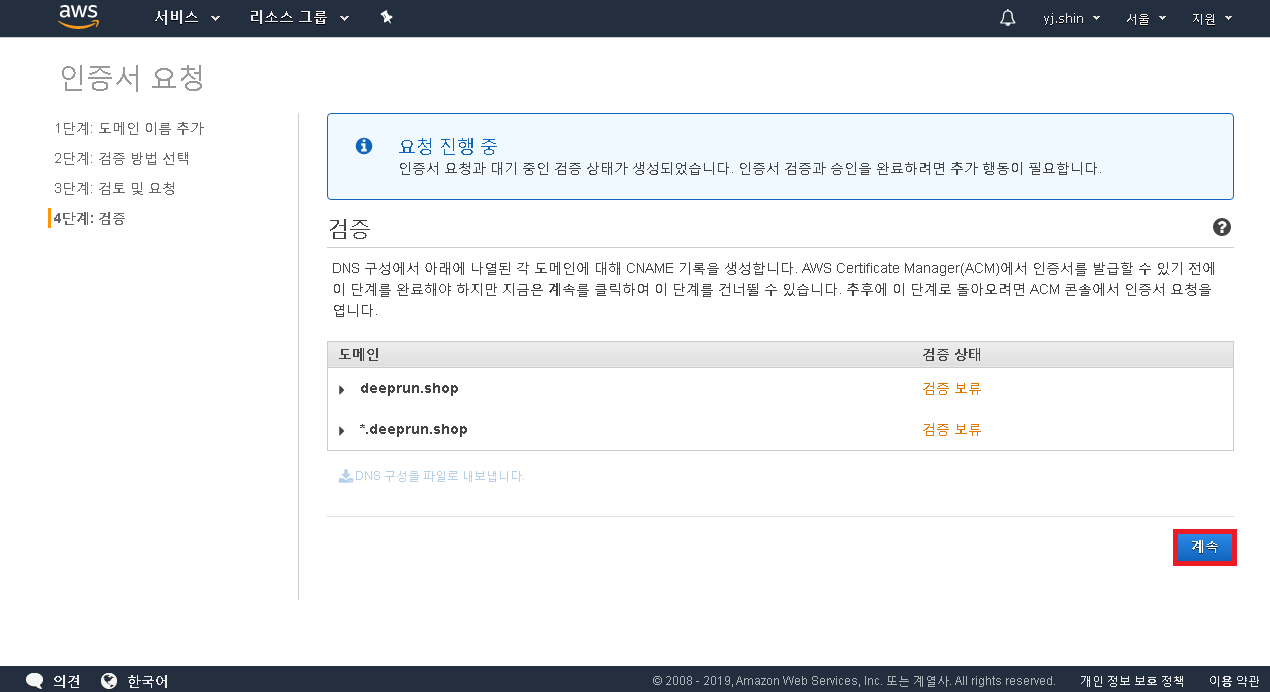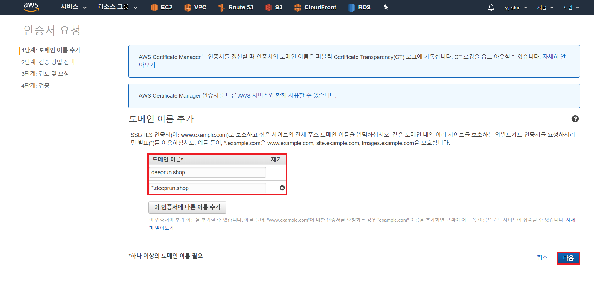 도메인 이름은 2개를 추가 시켜주면 됩니다.