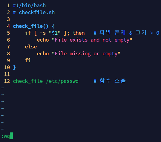 - 스크립트 실행 시, check_file /etc/passwd 와 같이 호출해 본다.