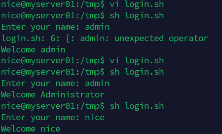 - 입력값이 "admin" 이면 "Welcome Administrator" 출력