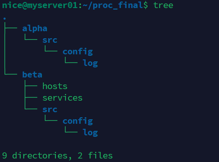 - prac_final 안에 alpha, beta, gamma 세 디렉토리를 동시에 생성하세요.