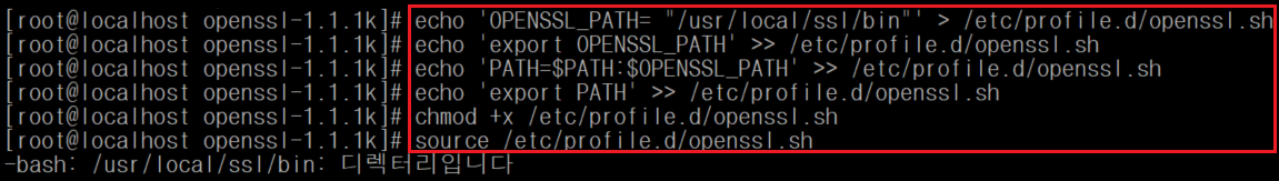 # echo 'OPENSSL_PATH= "/usr/local/ssl/bin"' > /etc/profile.d/openssl.sh
