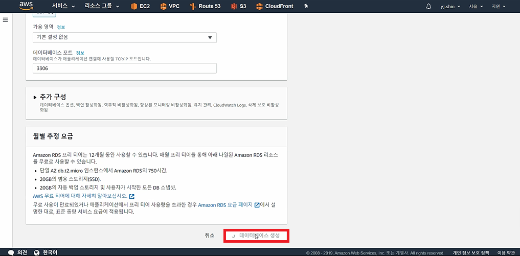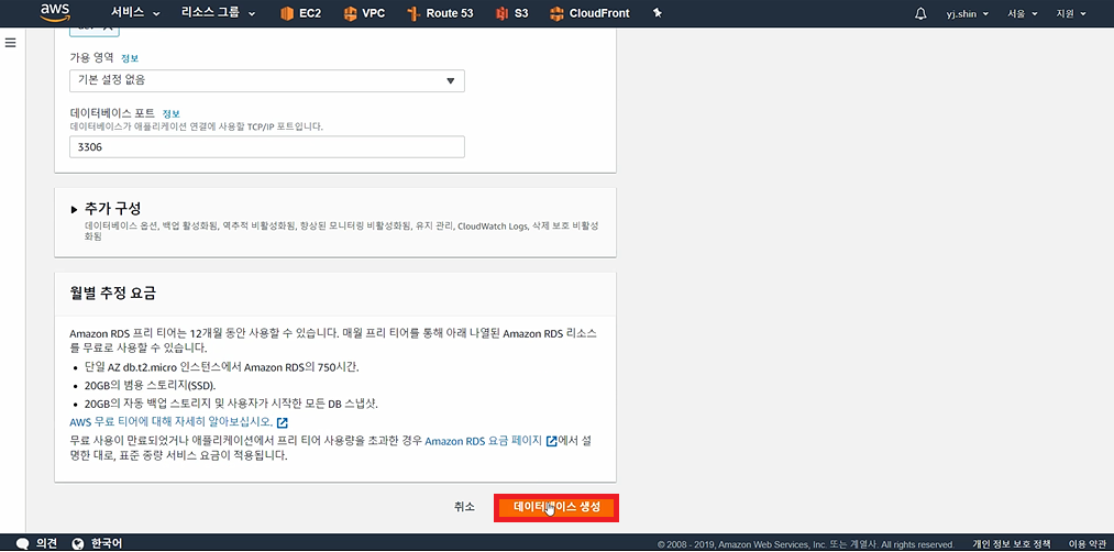 서비스 - RDS 검색 - Dashboard - 데이터베이스 생성