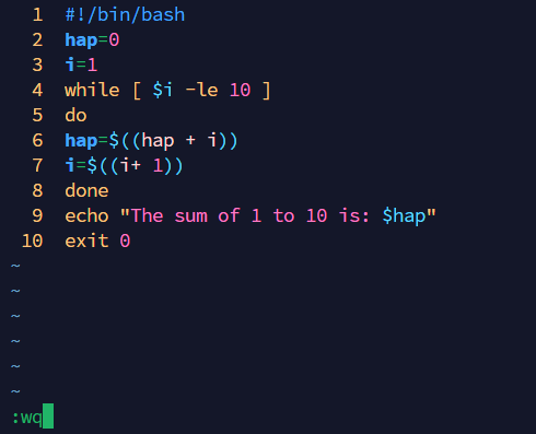 echo "The sum of 1 to 10 is: $hap"